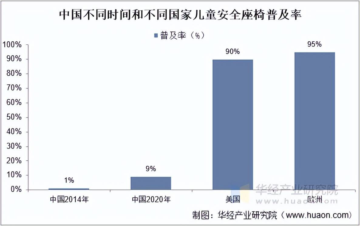 近年来虽然因为糊口程度的提高以及对平安认识的提拔,儿童平安座椅的利用率快速提拔,但仍不脚10%,因而比拟美国、欧洲90以上的普及率,我国平安座椅普及率仍有较大的提拔空间。儿童平安座椅市场规模无望进一步增加。