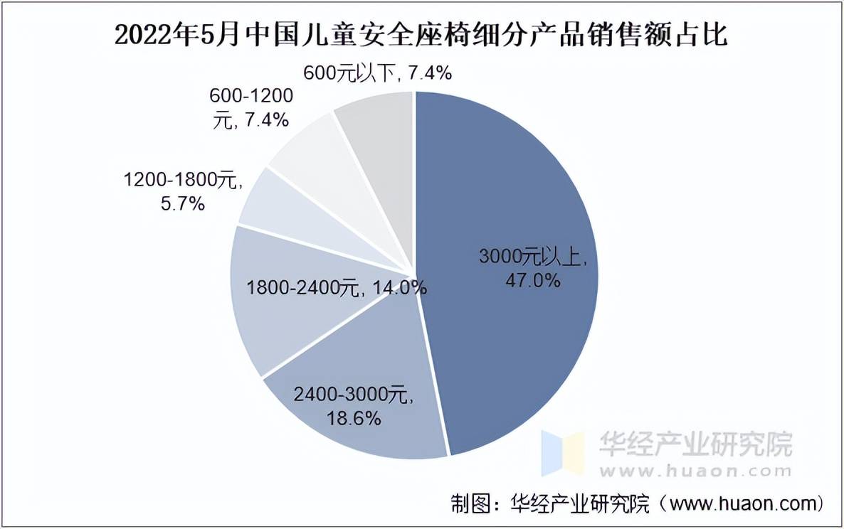 按照数据显示,正在中国儿童平安座椅各个价位产物占比中,3000元以上的产物发卖额占比最沉,占比47%,2400-3000元产物占比18。6%,1800-2400元产物占比14%,600-1200元及600元以下产物占比不异,别离占比7。4%,1200-1800元产物占比5。7%。
