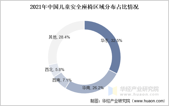 我国汽车儿童平安座椅企业大多分布正在儿童玩具制制业相对发财的区域,属于典型的轻工财产,以江苏、浙江、福建等地为代表的企业所正在区域,是我国最大的平安座椅出产。按照数据显示,中国儿童平安座椅区域分布中,华东占比最沉,占比32。5%,华南占比第二,西南占比7。1%,西北占比5。8%,其他占比28。4%。