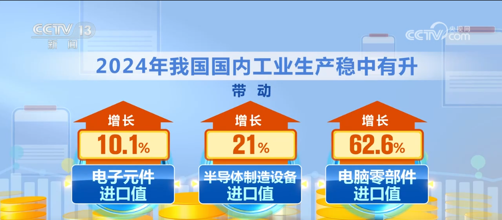 2024年,我国进口规模不竭扩大,不只满脚了国内出产需要,也丰硕了消费选择。客岁,我国国内工业出产稳中有升,带动电子元件、半导体系体例制设备、电脑零部件进口值别离增加10。1%、21%、62。6%;铁矿砂、天然气、9。9%、14。4%。同期,我国很多平易近生消费品的进口需求较为兴旺,如服拆、生果、葡萄酒等进口值别离增加5。6%、38。8%。